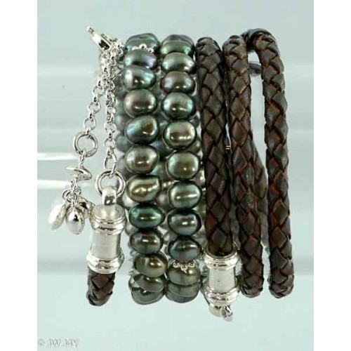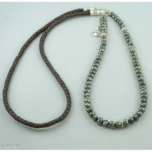 By detaching the leather band you can also wear just the pearl necklace as a short necklace or bracelet. Replace the leather band with a silver necklace for more sparkle.  Enjoy!