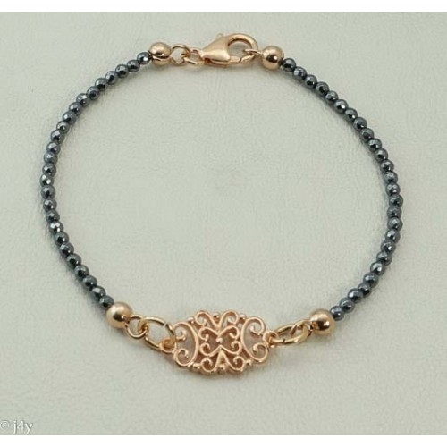 Bracelet (Hematite dark-grey/925 Silver rose gold-plated)
